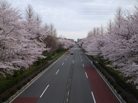 約16m幅の車道いっぱいに桜のアーチができます。とても見事です