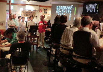 このところあちこちのうたごえ喫茶で前に出て、マイクを持って歌っている